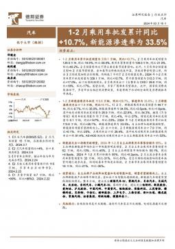 [新能源汽车]2024-03-10-德邦证券-汽车:1-2月乘用车批发累计同比+10.7%,新能源渗透率为33.5%-2页(银创产业通www.chanyetong.net)