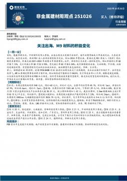 [建筑建材]2025-10-26-国金证券-非金属建材周观点:关注出海、M9材料的积极变化-18页(银创产业通www.chanyetong.net)