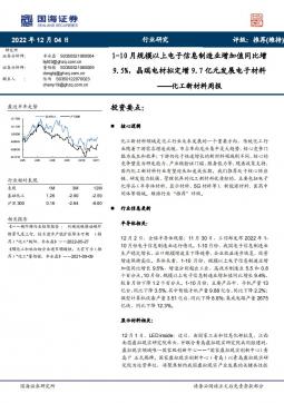 [化工]2022-12-05-国海证券-化工新材料周报:1-10月规模以上电子信息制造业增加值同比增9.5%,晶瑞电材拟定增9.7亿元发展电子材料-36页(银创产业通www.chanyetong.net)