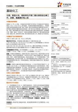 [化工]2022-12-05-天风证券-基础化工行业研究周报:云南:鼓励火电、钢铁率先开展二氧化碳排放达峰工作,尿素、氢氟酸价格上涨-20页(银创产业通www.chanyetong.net)