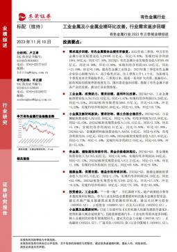 [金属]2023-11-10-东莞证券-有色金属行业2023年三季报业绩综述:工业金属及小金属业绩环比改善,行业需求逐步回暖-27页(银创产业通www.chanyetong.net)