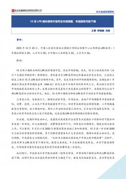[宏观报告]10月LPR报价保持不变符合市场预期,年底前有可能下调(银创产业通www.chanyetong.net)