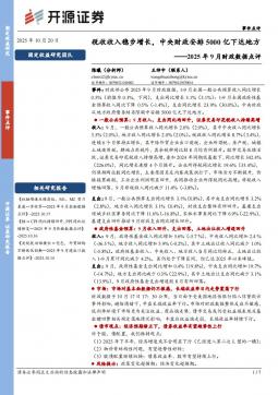 [宏观报告]2025年9月财政数据点评:税收收入稳步增长,中央财政安排5000亿下达地方(银创产业通www.chanyetong.net)