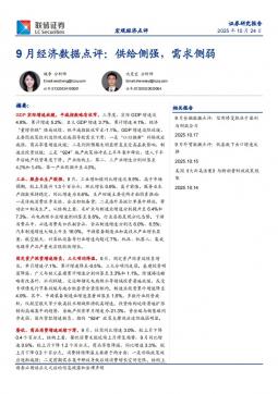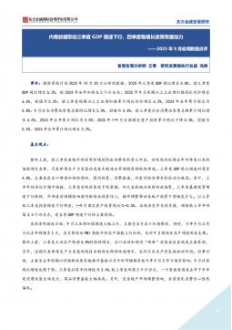 [宏观报告]2025年9月宏观数据点评:内需放缓带动三季度GDP增速下行,四季度稳增长政策有望加力(银创产业通www.chanyetong.net)