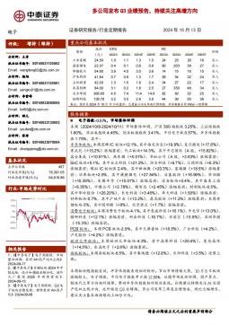 [半导体]2024-10-16-中泰证券-电子行业定期报告:多公司发布Q3业绩预告,持续关注高增方向-15页(银创产业通www.chanyetong.net)