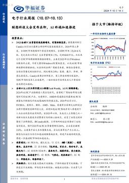 [半导体]2024-10-14-华福证券-电子行业周报:联想科技大会发布在即,AI终端加速推进-21页(银创产业通www.chanyetong.net)