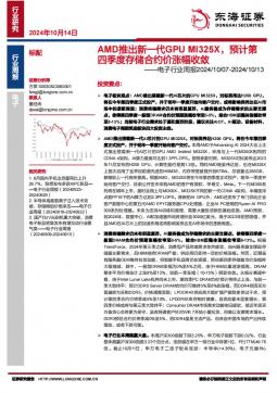[半导体]2024-10-15-东海证券-电子行业周报:AMD推出新一代GPU MI325X,预计第四季度存储合约价涨幅收敛-14页(银创产业通www.chanyetong.net)