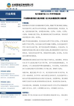 [电池]2023-09-05-长城国瑞证券-电力设备行业2023年半年报总结:行业整体盈利能力逐步修复 动力电池增速或将大幅放缓-17页(银创产业通www.chanyetong.net)