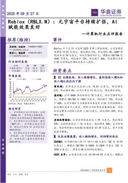 [计算机]2025-09-28-华鑫证券-计算机行业点评报告:Roblox:元宇宙平台持续扩张,AI赋能效果良好-4页(银创产业通www.chanyetong.net)