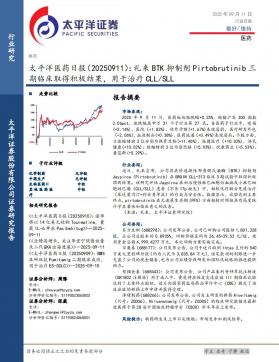 [医药]2025-09-14-太平洋-医药日报:礼来BTK抑制剂Pirtobrutinib三期临床取得积极结果,用于治疗CLL-SLL-3页(银创产业通www.chanyetong.net)