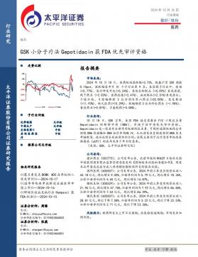 [医药]2024-10-20-太平洋-医药行业周报:GSK小分子疗法Gepotidacin获FDA优先审评资格-3页(银创产业通www.chanyetong.net)