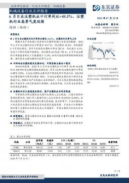 [通用设备]2024-07-24-东吴证券-机械设备行业点评报告:6月日本注塑机出口订单同比+40.3%,注塑机行业高景气度延续-2页(银创产业通www.chanyetong.net)