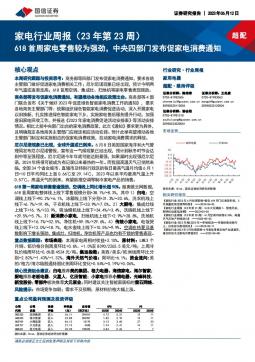 [家电家居]2023-06-12-国信证券-家电行业周报(23年第23周):618首周家电零售较为强劲,中央四部门发布促家电消费通知-15页(银创产业通www.chanyetong.net)(银创产业通www.chanyetong.net)