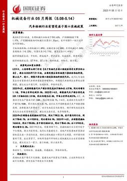 [通用设备]2023-05-14-国联证券-机械设备行业05月周报:汽车检测行业有望受益于国六实施政策-11页(银创产业通www.chanyetong.net)(银创产业通www.chanyetong.net)