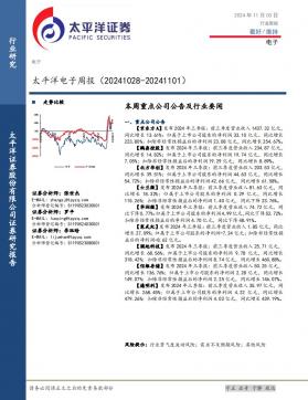 [电子]2024-10-29-太平洋-电子行业周报-8页(银创产业通www.chanyetong.net)(银创产业通www.chanyetong.net)