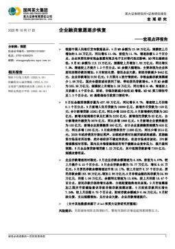 [宏观报告]宏观点评报告:企业融资意愿逐步恢复(银创产业通www.chanyetong.net)