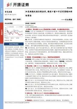[金属]2023-08-21-开源证券-有色金属行业周报:加息预期走强压制金价,锡进口窗口开启有望缓和供给紧张-12页(银创产业通www.chanyetong.net)
