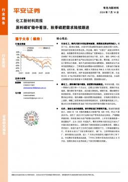 [金属]2024-07-14-平安证券-化工新材料行业周报:原料磷矿稳中看涨,秋季磷肥需求陆续跟进-15页(银创产业通www.chanyetong.net)