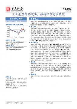 [金属]2024-07-15-华安证券-有色金属行业周报:工业金属价格震荡,静待旺季需求催化-14页(银创产业通www.chanyetong.net)