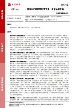 [汽车零部件]2023-02-14-东莞证券-汽车行业跟踪点评:1月汽车产销同环比双下滑,有望触底反弹-3页(银创产业通www.chanyetong.net)(银创产业通www.chanyetong.net)