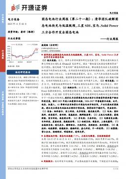 [电池]2025-11-02-开源证券-电力设备行业固态电池行业周报(第二十一期):清华团队破解固态电池快充与低温瓶颈,三星SDI、宝马、Solid Power三方合作开发全固态电池-11页(银创产业通www.chanyetong.net)