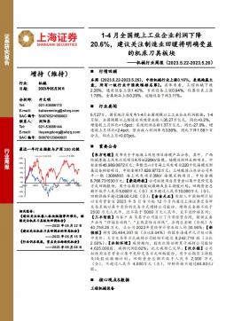 [通用设备]2023-05-30-上海证券-机械行业周报:1-4月全国规上工业企业利润下降20.6%,建议关注制造业回暖将明确受益的机床刀具板块-17页(银创产业通www.chanyetong.net)