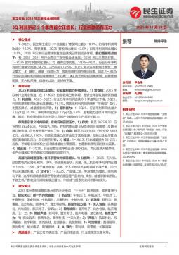 [军工]2025-11-03-民生证券-军工行业2025年三季报业绩回顾:3Q利润系近9个季度首次正增长;行业回款仍有压力-18页(银创产业通www.chanyetong.net)