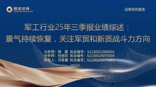 [军工]2025-11-02-国金证券-军工行业25年三季报业绩综述:景气持续恢复,关注军贸和新质战斗力方向-38页(银创产业通www.chanyetong.net)