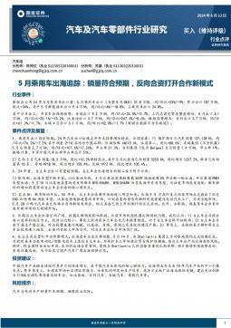 [汽车零部件]2024-06-12-国金证券-汽车及汽车零部件行业研究:5月乘用车出海追踪:销量符合预期,反向合资打开合作新模式-4页(银创产业通www.chanyetong.net)(银创产业通www.chanyetong.net)