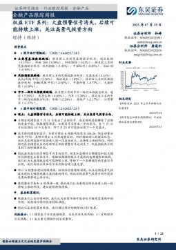 [金融]2025-07-20-东吴证券-金融产品跟踪周报:权益ETF系列:大盘预警信号消失,后续可能持续上涨,关注高景气投资方向-23页(银创产业通www.chanyetong.net)