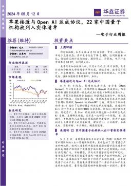 [半导体]2024-05-12-华鑫证券-电子行业周报:AI达成协议,22家中国量子机构被列入实体清单-40页(银创产业通www.chanyetong.net)