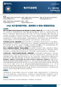 [半导体]2024-05-06-国金证券-电子行业研究:24Q1电子盈利提升明显,继续看好AI驱动+周期复苏机会-36页(银创产业通www.chanyetong.net)