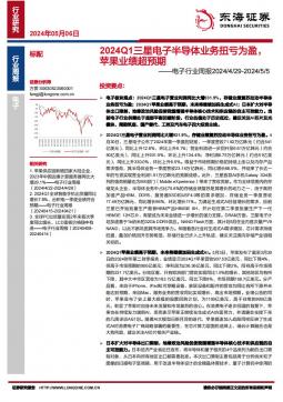 [半导体]2024-05-06-东海证券-电子行业周报:2024Q1三星电子半导体业务扭亏为盈,苹果业绩超预期-15页(银创产业通www.chanyetong.net)