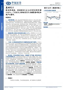 [化工]2024-10-27-华福证券-新材料周报:彤程新材Q3扣非净利润同增19.85%,广东省大力推动光芯片关键装备研发和国产化替代-11页(银创产业通www.chanyetong.net)