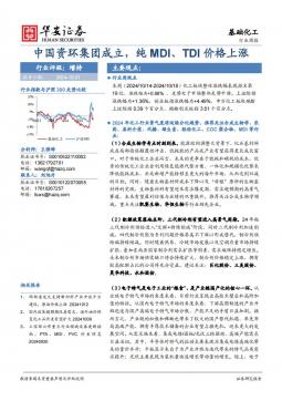 [化工]2024-10-22-华安证券-基础化工行业周报:中国资环集团成立,纯MDI、TDI价格上涨-31页(银创产业通www.chanyetong.net)