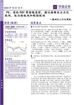 [化工]2024-10-14-华鑫证券-基础化工行业周报:PX、涤纶POY等涨幅居前,建议继续关注石化板块、钛白粉板块和轮胎板块-31页(银创产业通www.chanyetong.net)