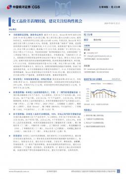 [化工]2024-09-23-中国银河-化工行业周报:化工品价差表现较弱,建议关注结构性机会-19页(银创产业通www.chanyetong.net)