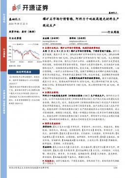 [化工]2024-09-23-开源证券-基础化工行业周报:磷矿石市场行情暂稳,阿科力千吨级高透光材料生产线试生产-34页(银创产业通www.chanyetong.net)