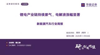 [电池]2025-11-30-华鑫证券-新能源汽车行业周报:锂电产业链持续景气,电解液涨幅显著-33页(银创产业通www.chanyetong.net)
