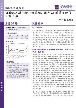 [半导体]2025-09-29-华鑫证券-电子行业周报:存储芯片进入新一轮周期,国产AI芯片大时代已经开启-30页(银创产业通www.chanyetong.net)