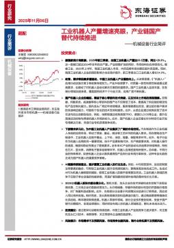 [机器人]2025-11-06-东海证券-机械设备行业简评:工业机器人产量增速亮眼,产业链国产替代持续推进-2页(银创产业通www.chanyetong.net)