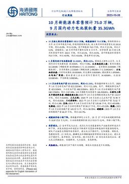 [电池]2023-10-31-海通国际-新能源板块行业周报:10月新能源车零售预计75.0万辆,9月国内动力电池装机量35.3GWh-9页(银创产业通www.chanyetong.net)(银创产业通www.chanyetong.net)