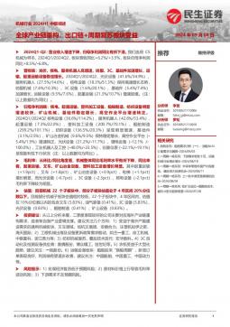 [工程机械]2024-09-09-民生证券-机械行业2024H1中报综述:全球产业链重构,出口链+周期复苏板块受益-41页(银创产业通www.chanyetong.net)(银创产业通www.chanyetong.net)