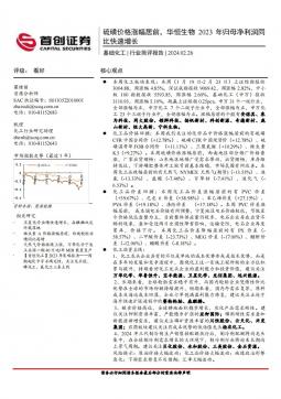 [化工]2024-02-27-首创证券-基础化工行业简评报告:硫磺价格涨幅居前,华恒生物2023年归母净利润同比快速增长-16页(银创产业通www.chanyetong.net)