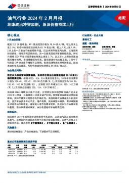 [化工]2024-03-03-国信证券-油气行业2024年2月月报:地缘政治冲突加剧,原油价格持续上行-24页(银创产业通www.chanyetong.net)