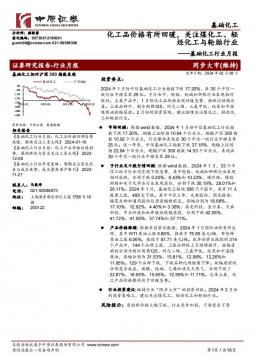 [化工]2024-02-18-中原证券-基础化工行业月报:化工品价格有所回暖,关注煤化工、轻烃化工与轮胎行业-16页(银创产业通www.chanyetong.net)