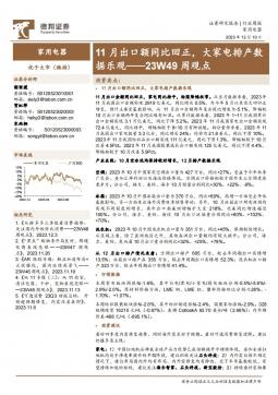 [家电家居]2023-12-11-德邦证券-家用电器23W49周观点:11月出口额同比回正,大家电排产数据乐观-19页(银创产业通www.chanyetong.net)(银创产业通www.chanyetong.net)