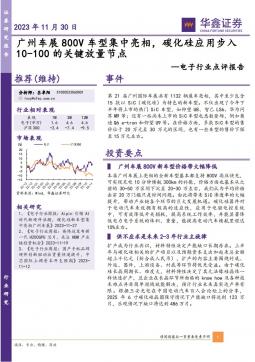 [电子]2023-11-30-华鑫证券-电子行业点评报告:广州车展800V车型集中亮相,碳化硅应用步入10-100的关键放量节点-4页(银创产业通www.chanyetong.net)(银创产业通www.chanyetong.net)