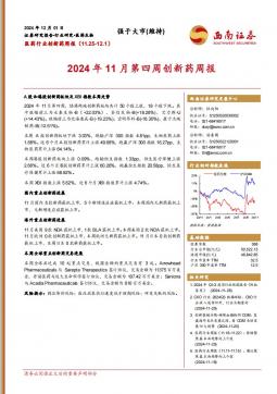 [生物医药]2024-12-02-西南证券-2024年11月第四周创新药周报-18页(银创产业通www.chanyetong.net)