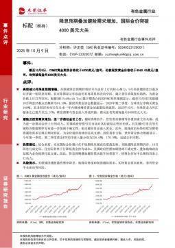 [有色金属]2025-10-09-东莞证券-有色金属行业事件点评:降息预期叠加避险需求增加,国际金价突破4000美元大关-2页(银创产业通www.chanyetong.net)